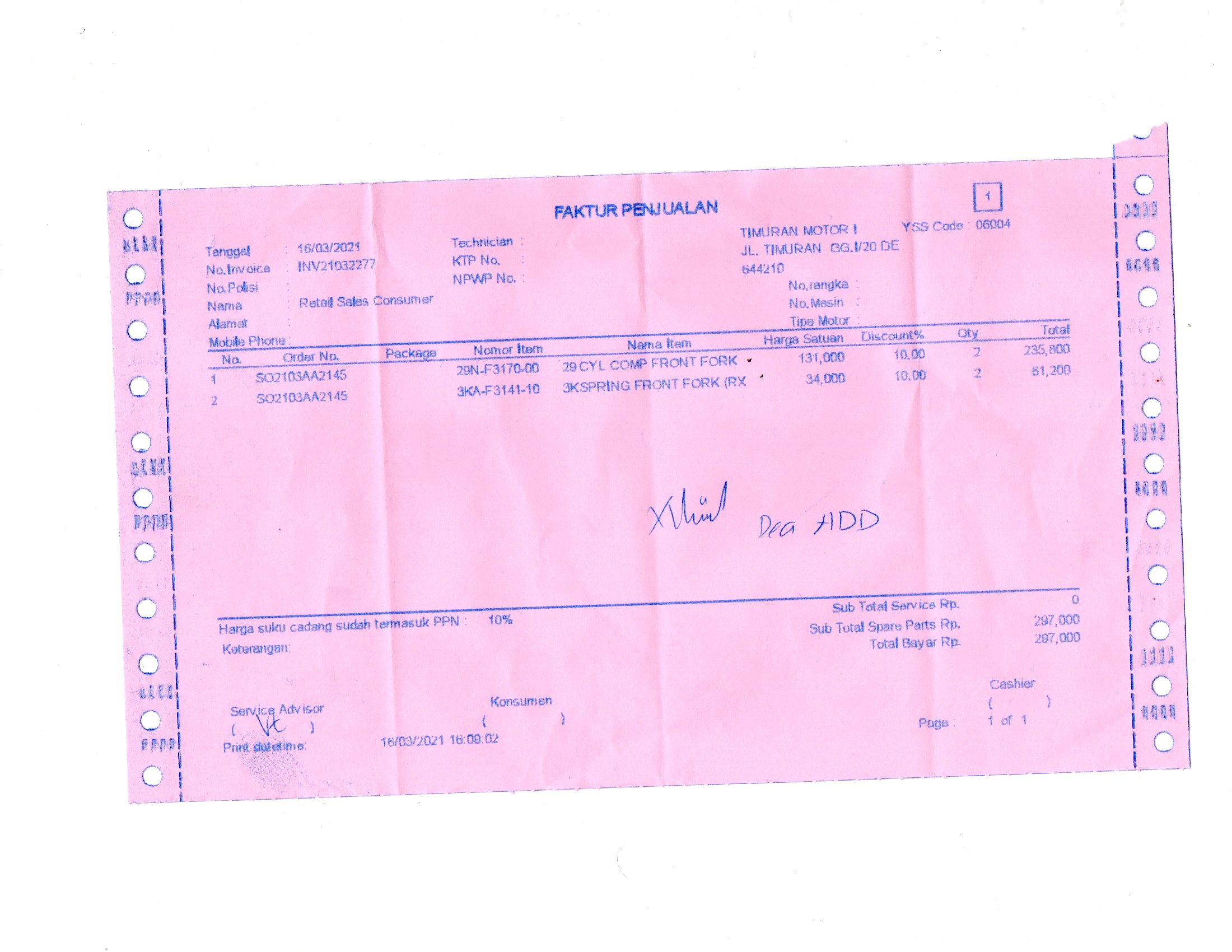 2 PcsYMHCCFF001 29 CYL COMP FRONT FORK - (Pcs)Rp. 131,000Rp. 262,00010 %Rp. 26,200Rp. 235,800