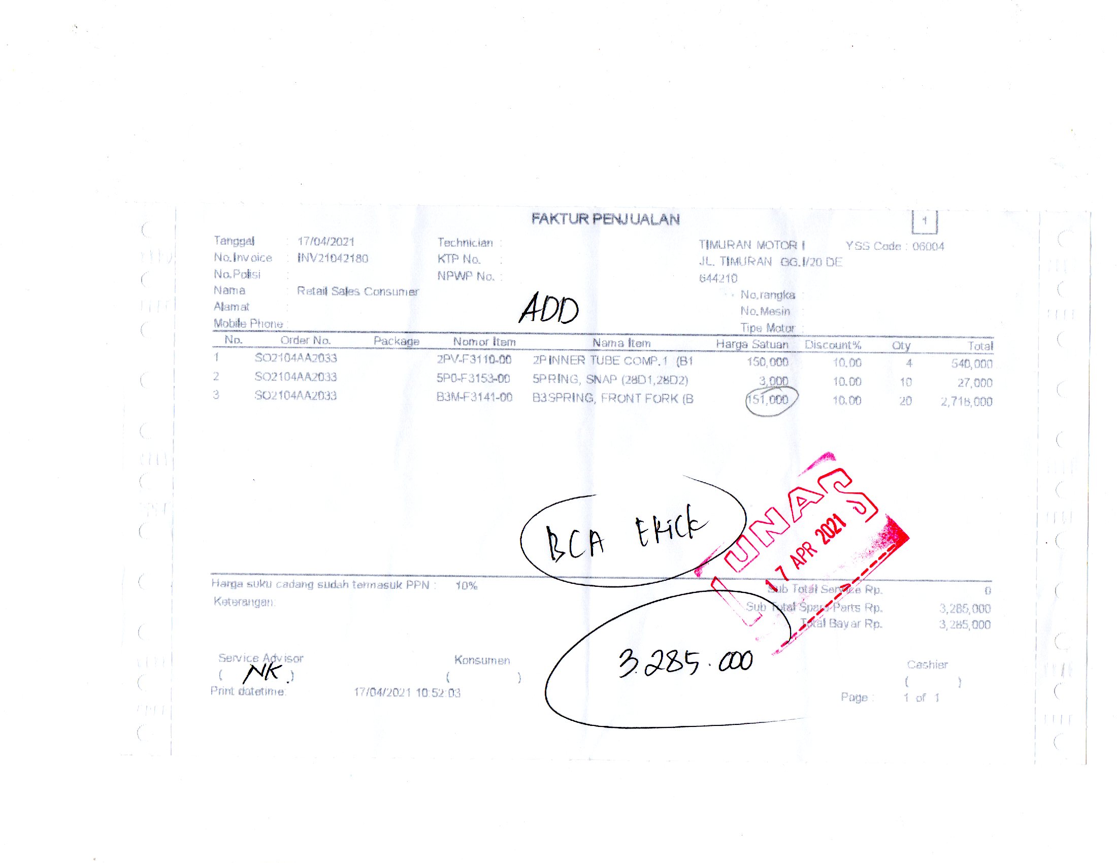 117-04-2021 15:35PELUNASANRp. 3,285,000Rp. 0Rp. 3,285,000BCADownload