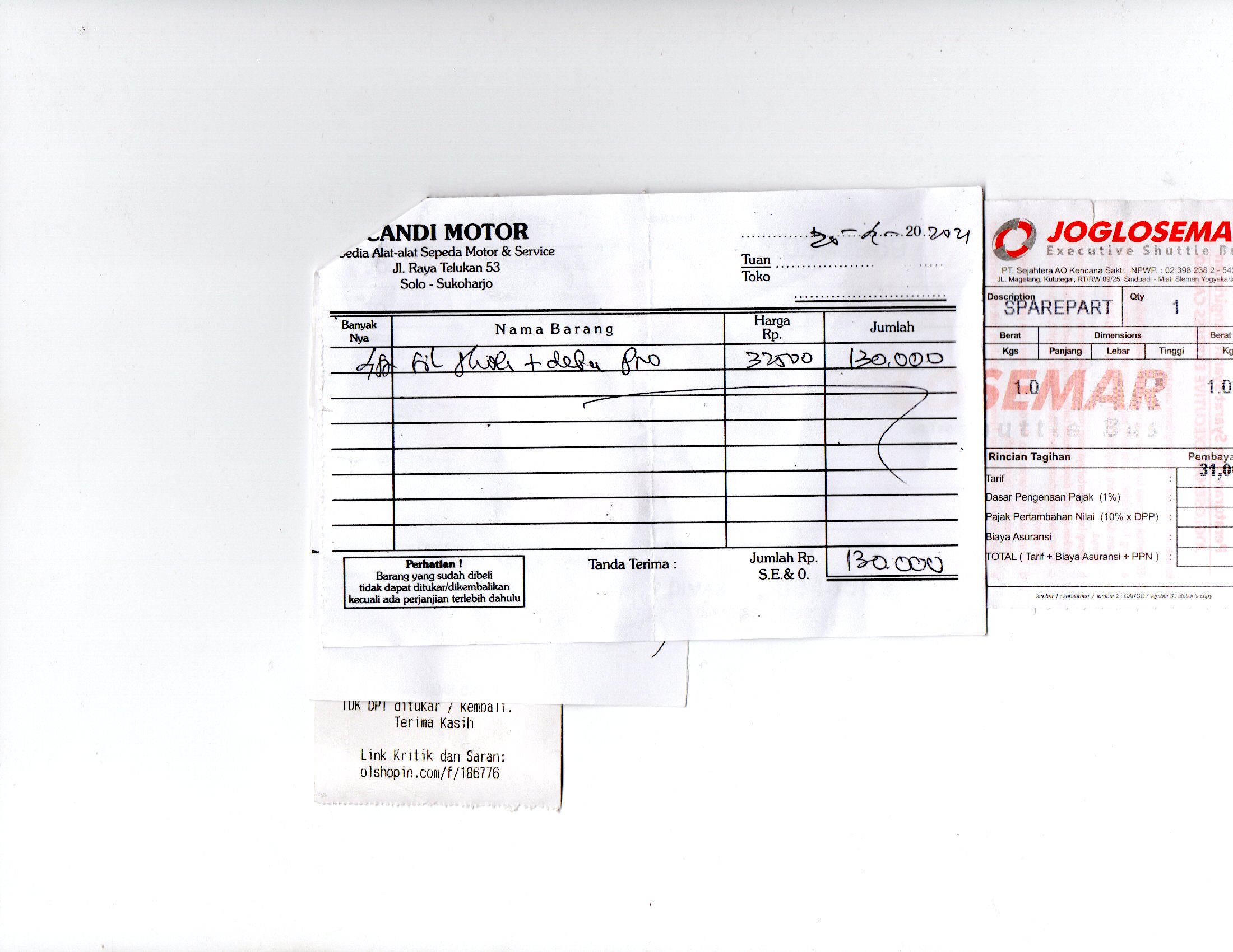 | 1 | 20-04-2021 10:45 | PELUNASAN | Rp. 130,000 | Rp. 0 | Rp. 130,000 | BCA | Download |