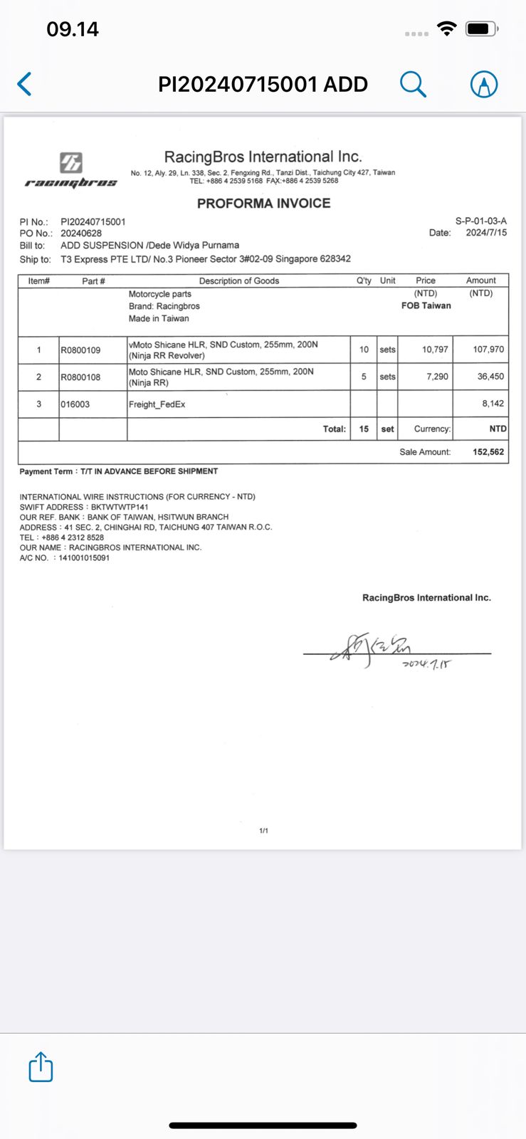 | 5 Sets | RBMSH004 MOTO SHICANE HLR, SND Custom, 255mm, 200N Ninja 150 RR (Sets) | Rp. 3,529,120 | Rp. 17,645,600 | - | - | Rp. 17,645,600 |