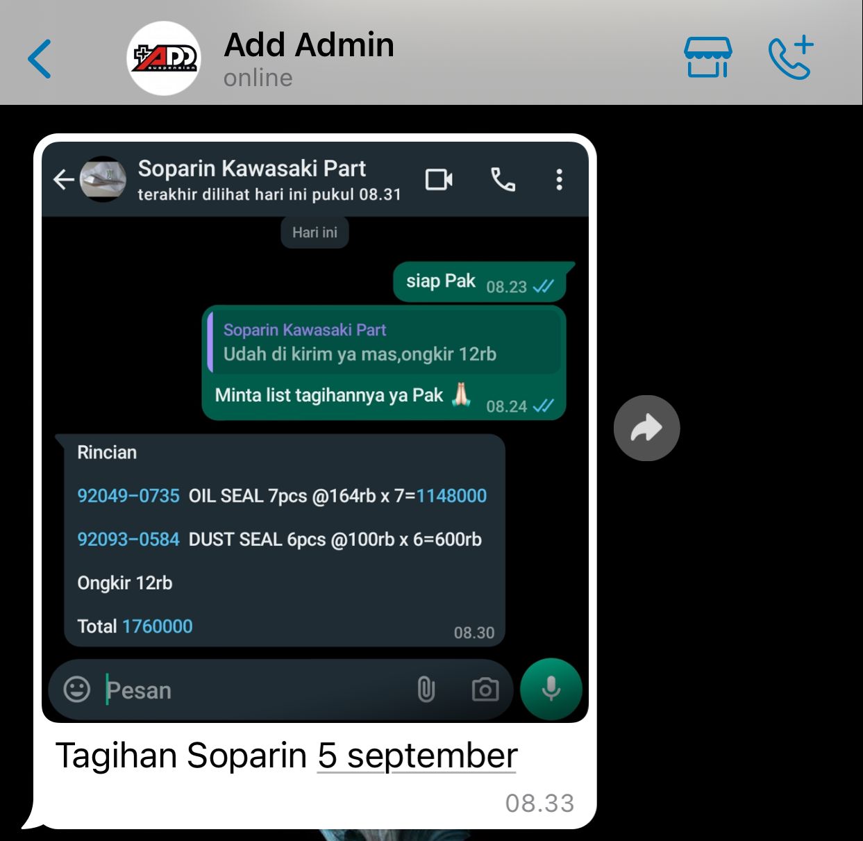 7 PcsKWSOS001 Oil Seal KX250/KX250F (2013-2019) - (Pcs)Rp. 164,000Rp. 1,148,000--Rp. 1,148,000