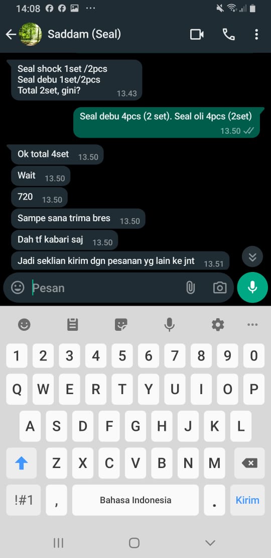 | 4 Pcs | ADDSOU0014 SEAL OLI USD 43 X 54 X 11 (Pcs) | Rp. 90,000 | Rp. 360,000 | - | - | Rp. 360,000 |