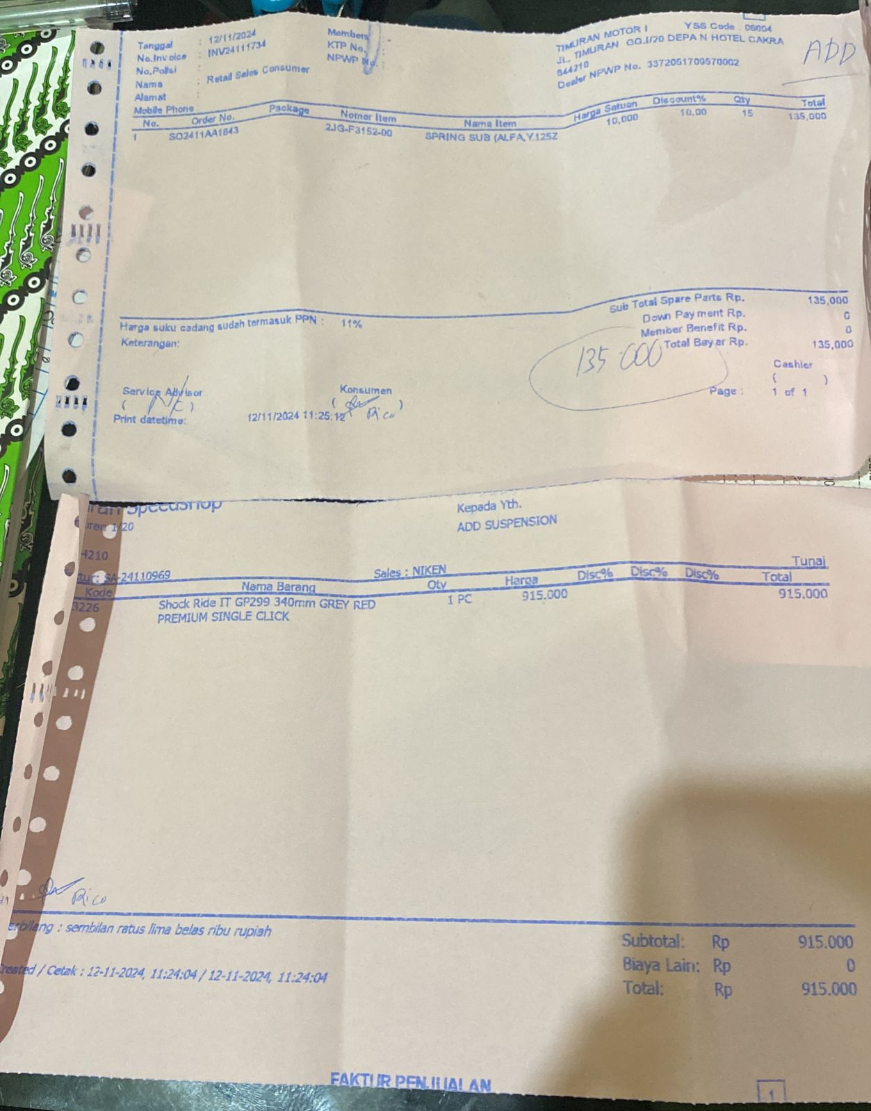 15 SetsYMHSS001 SPRING SUB 2JG (Sets)Rp. 10,000Rp. 150,00010 %Rp. 15,000Rp. 135,000
