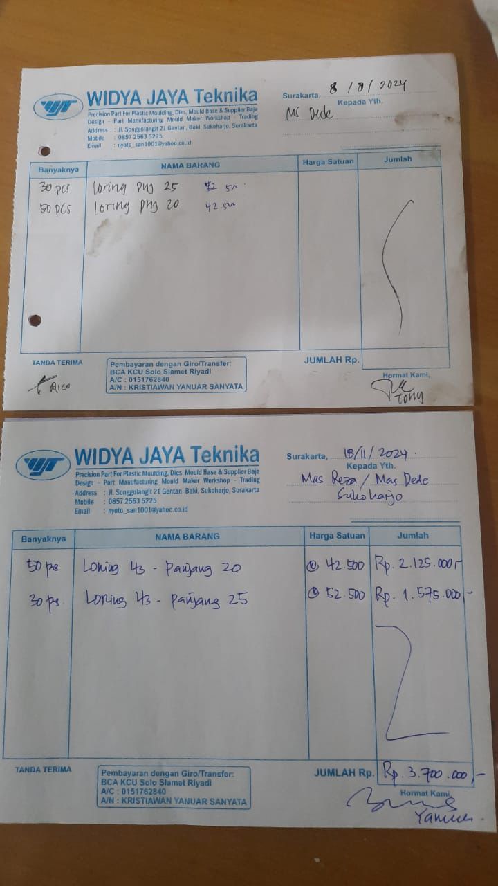 | 30 Sets | ADDLOW001 Lowering - (Sets) | Rp. 52,500 | Rp. 1,575,000 | - | - | Rp. 1,575,000 |