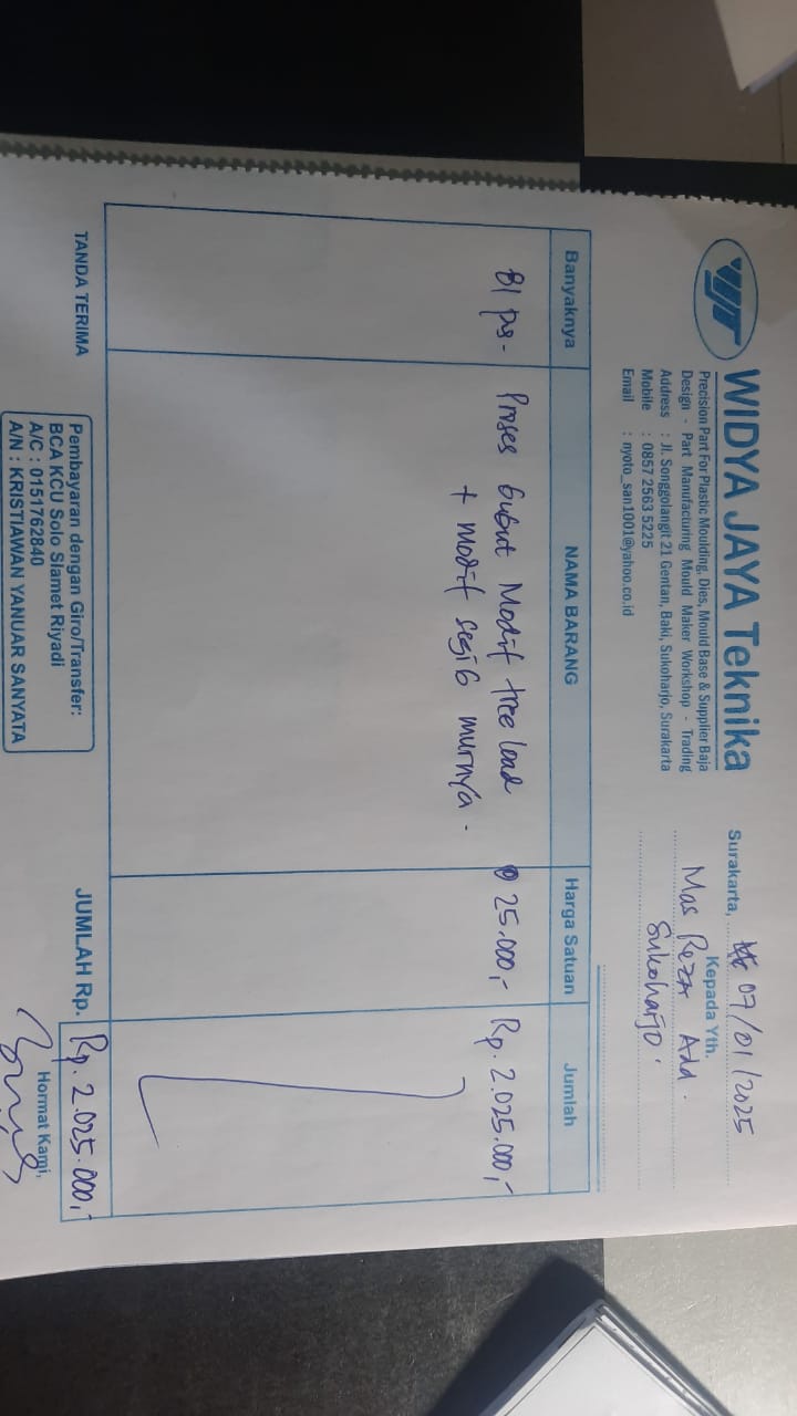 | 1 | 18-01-2025 16:04 | PELUNASAN | Rp. 2,025,000 | Rp. 0 | Rp. 2,025,000 | . | BCA | Download |