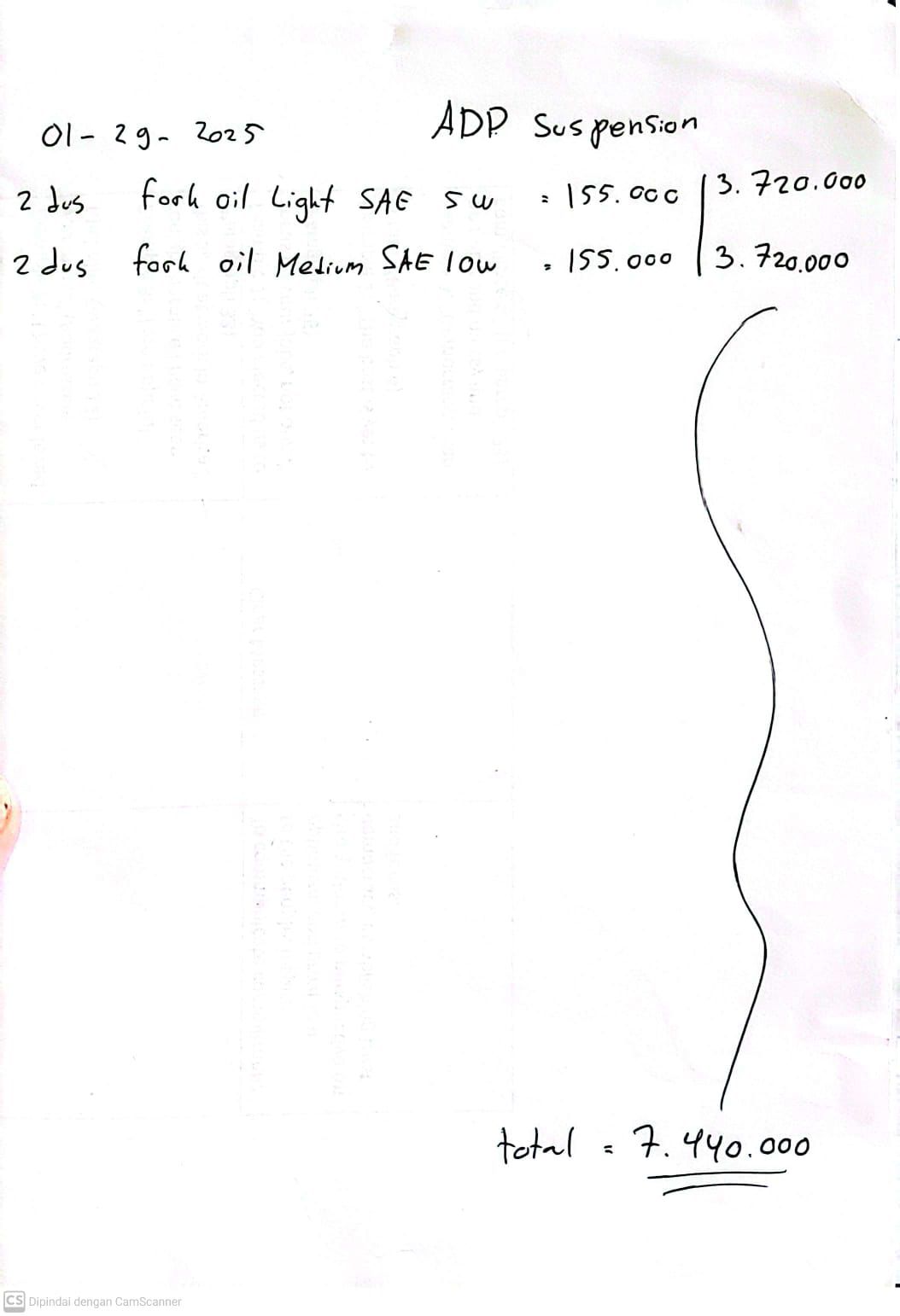 | 24 Pcs | CTXSL0001 Suspension Oil 5W 1L (Pcs) | Rp. 155,000 | Rp. 3,720,000 | - | - | Rp. 3,720,000 |