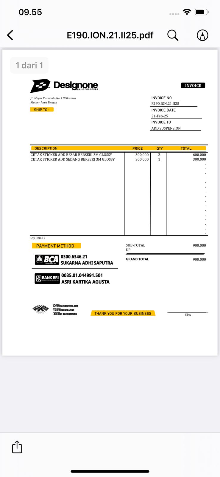| 3 Pcs | ADDSTCB001 Sticker besar - (Pcs) | Rp. 300,000 | Rp. 900,000 | - | - | Rp. 900,000 |