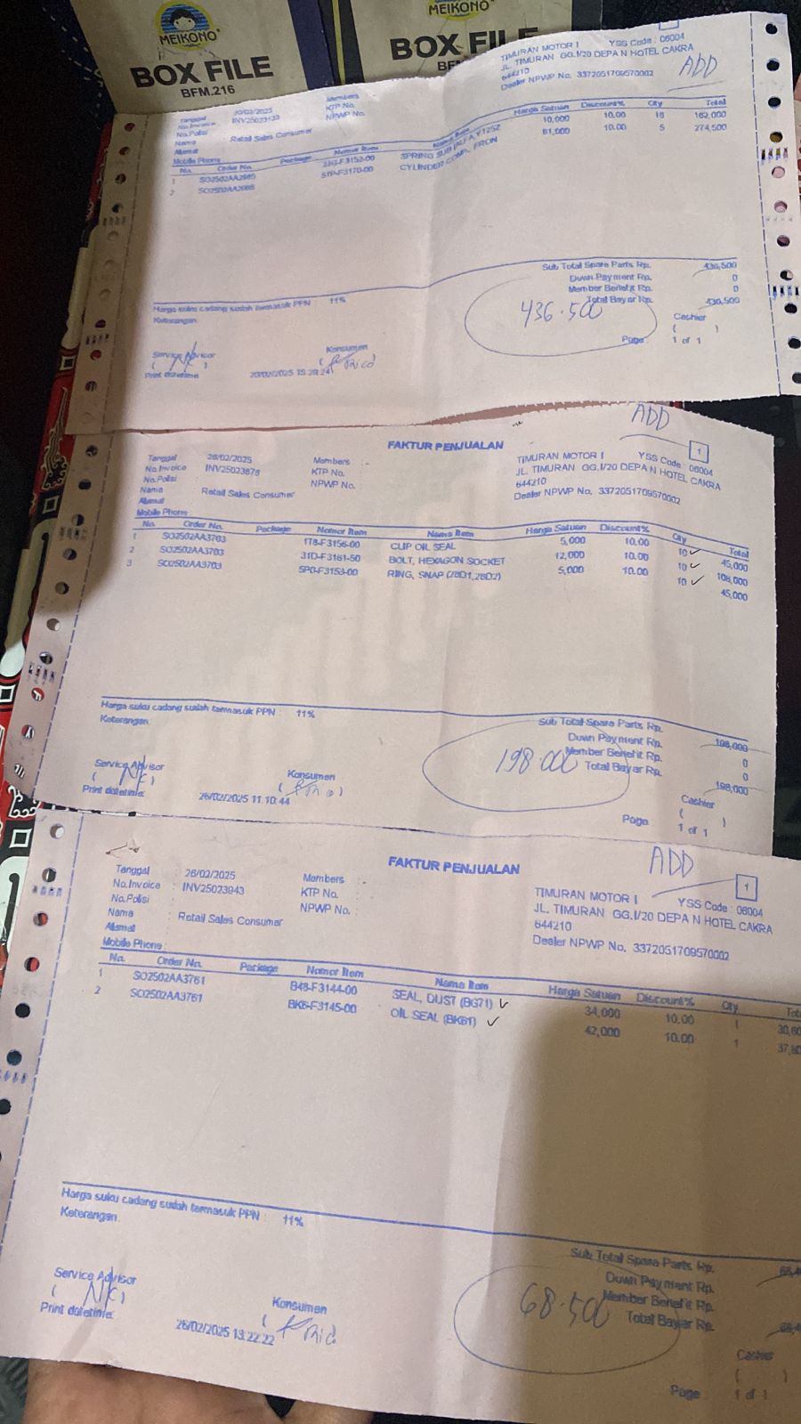 | 1 Pcs | ADDSOR001 OIL SEAL (BK61) YZF155 / YZF250 (Pcs) | Rp. 42,000 | Rp. 42,000 | 10 % | Rp. 4,200 | Rp. 37,800 |
