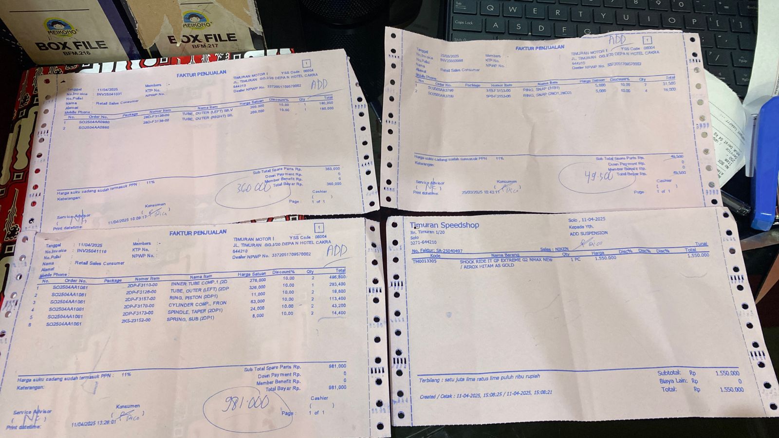 | 2 Sets | YMHCCFF2DP CYLINDER COMP., FRONT FORK - (Sets) | Rp. 63,000 | Rp. 126,000 | 10 % | Rp. 12,600 | Rp. 113,400 |