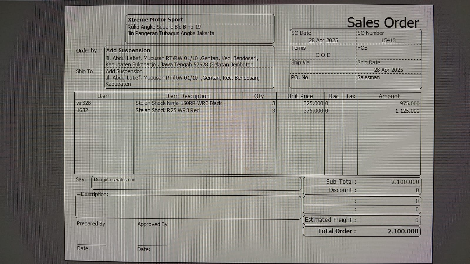 | 3 Sets | WR3P002 PRELOAD 41mm R-25 (Sets) | Rp. 275,000 | Rp. 825,000 | - | - | Rp. 825,000 |