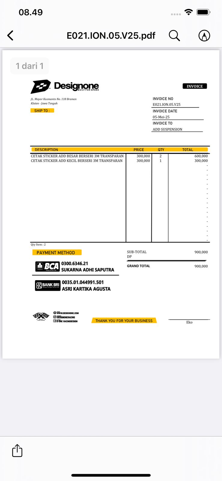 | 3 Pcs | ADDSTCB001 Sticker besar - (Pcs) | Rp. 300,000 | Rp. 900,000 | - | - | Rp. 900,000 |