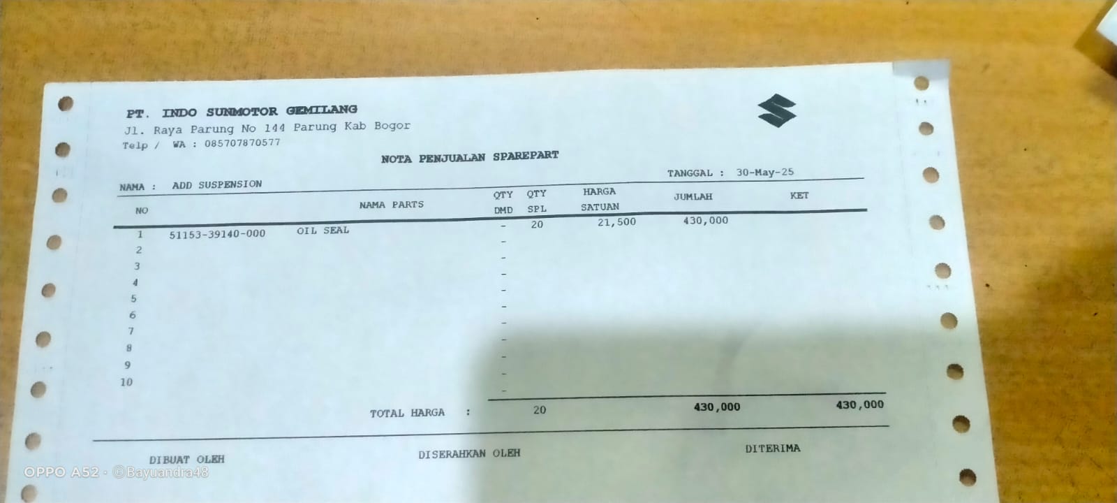 PT. INDO SUNMOTOR GEMILANG Jl. Raya Parung no.144. parung.kab. bogor, ,Jakarta Barat DKI Jakarta