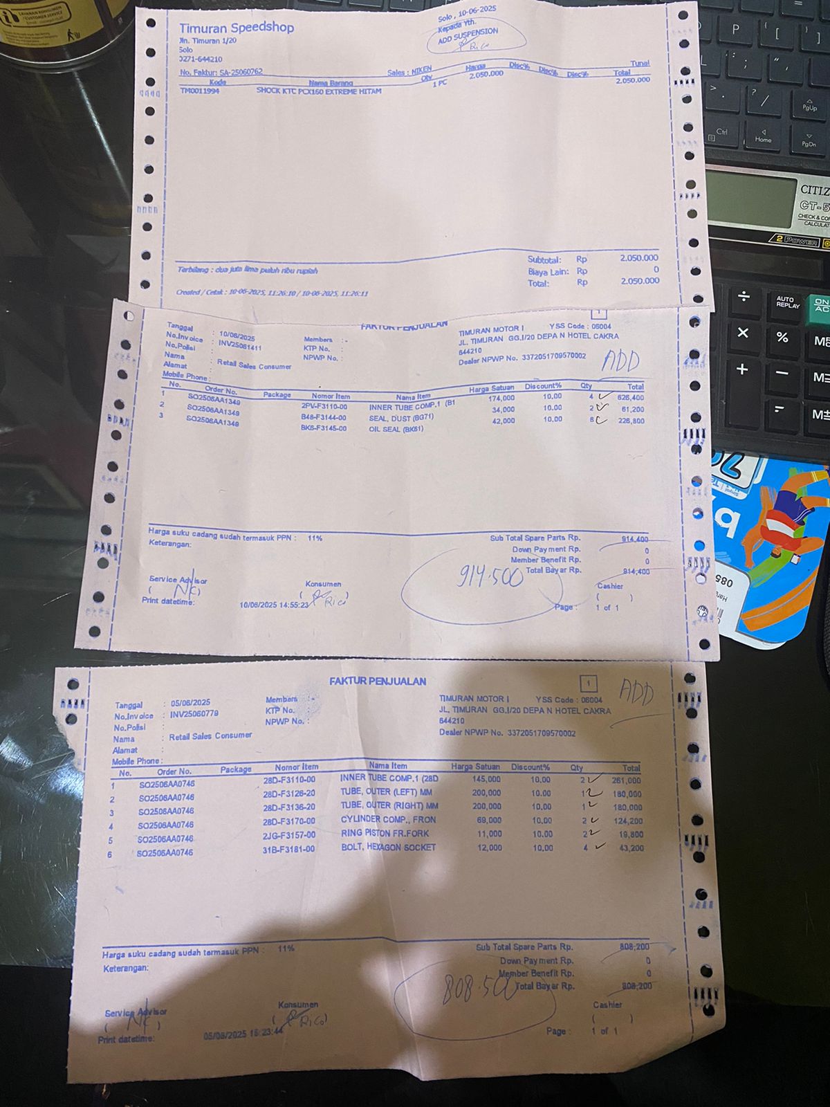 | 2 Pcs | ADDCCFF28D CYLINDER COMP., FRONT FORK - (Pcs) | Rp. 69,000 | Rp. 138,000 | 10 % | Rp. 13,800 | Rp. 124,200 |