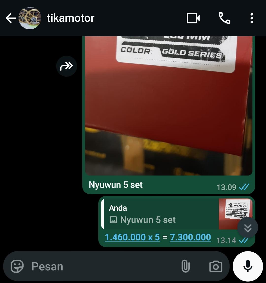 5 SetsRIDEGP002 RIDE IT GP 299 Merah/Hitam 280mm - (Sets)Rp. 1,460,000Rp. 7,300,000--Rp. 7,300,000