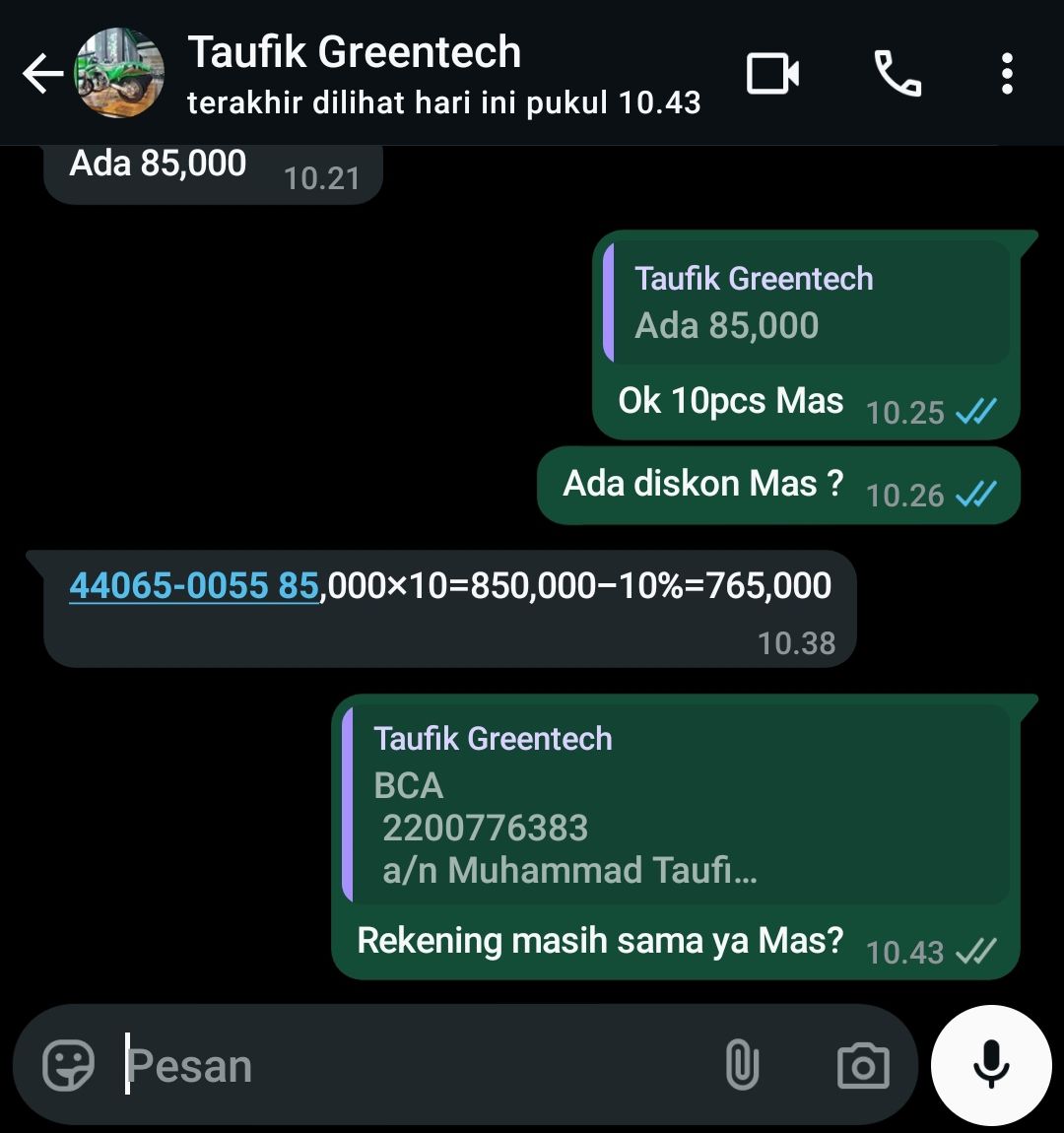 | 10 Pcs | ADDBSHG02 BUSHING - FRONT FORK - (Pcs) | Rp. 85,000 | Rp. 850,000 | 10 % | Rp. 85,000 | Rp. 765,000 |