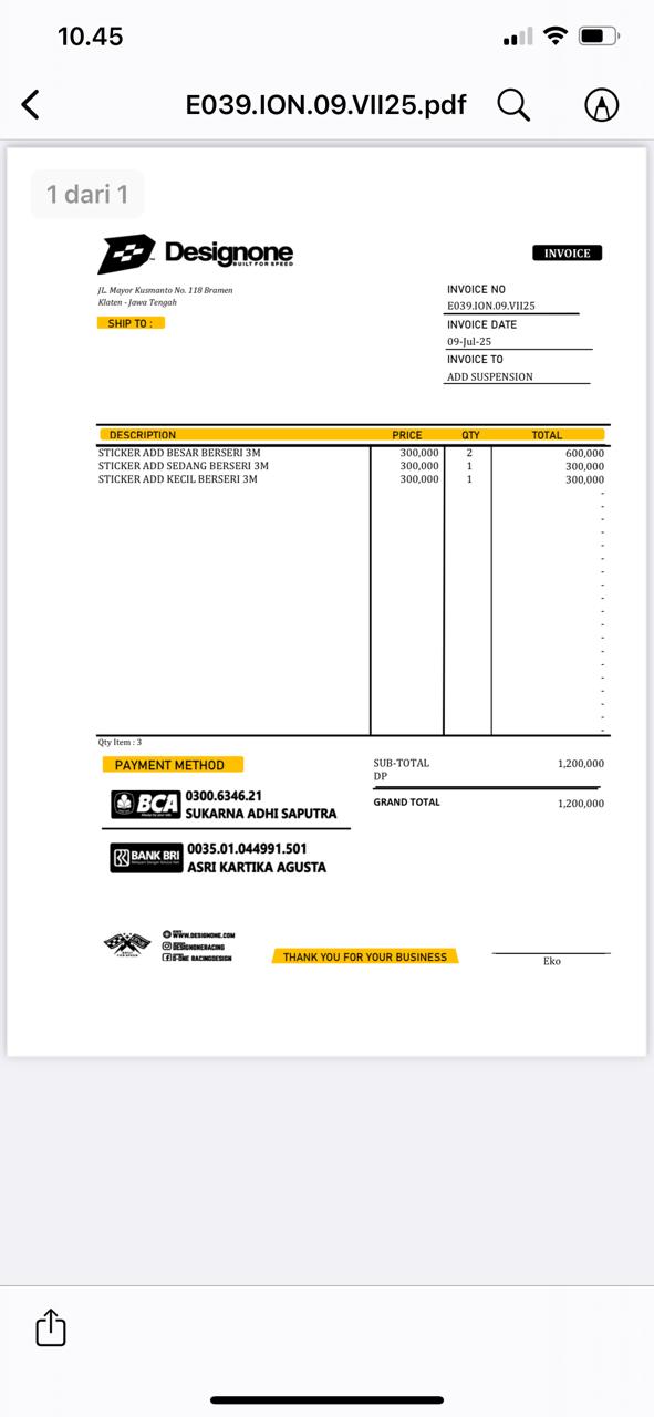 | 4 Pcs | ADDSTCB001 Sticker besar - (Pcs) | Rp. 300,000 | Rp. 1,200,000 | - | - | Rp. 1,200,000 |