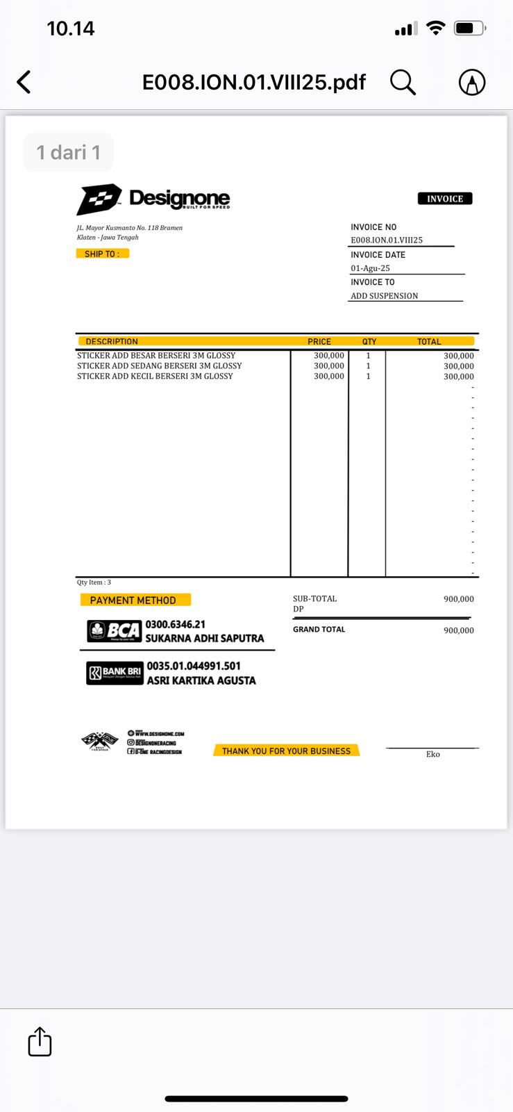 | 3 Pcs | ADDSTCB001 Sticker besar - (Pcs) | Rp. 300,000 | Rp. 900,000 | - | - | Rp. 900,000 |