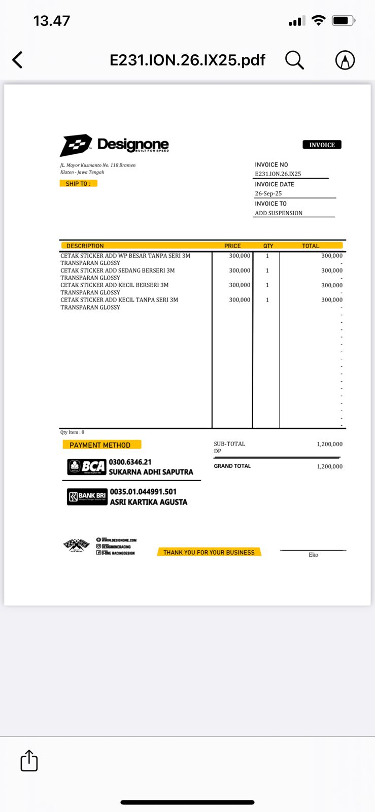 | 1 | 23-09-2025 14:30 | PELUNASAN | Rp. 1,200,000 | Rp. 0 | Rp. 1,200,000 | . | BCA | Download |