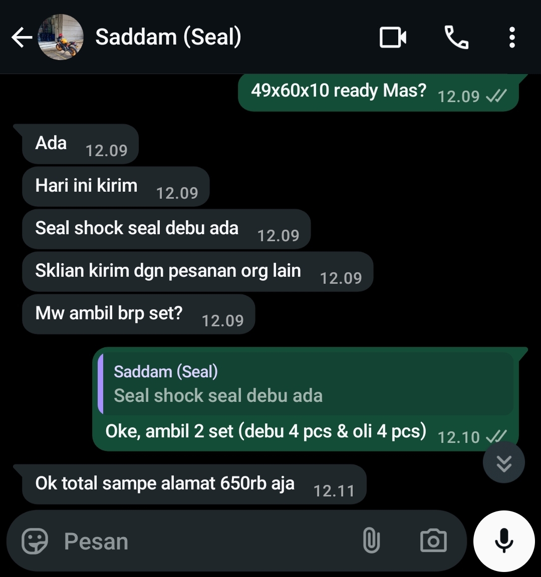 | 4 Pcs | ADDSLOL10 SEAL OLI USD 49 x 60 x 10 (Pcs) | Rp. 81,000 | Rp. 324,000 | - | - | Rp. 324,000 |