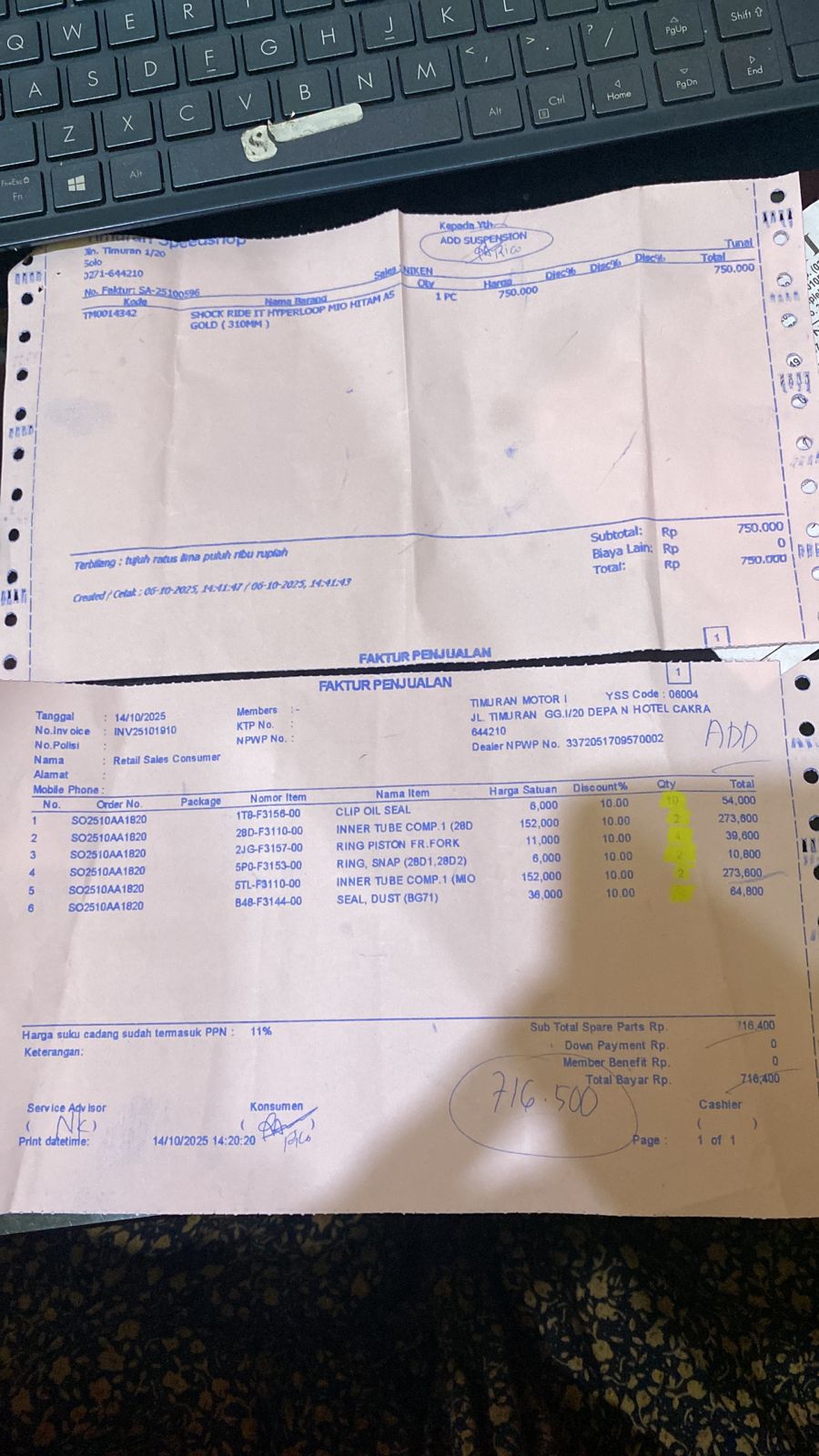 | 1 Sets | ADDRITKLX001 Mono Shock Ride IT - (Sets) | Rp. 750,000 | Rp. 750,000 | - | - | Rp. 750,000 |