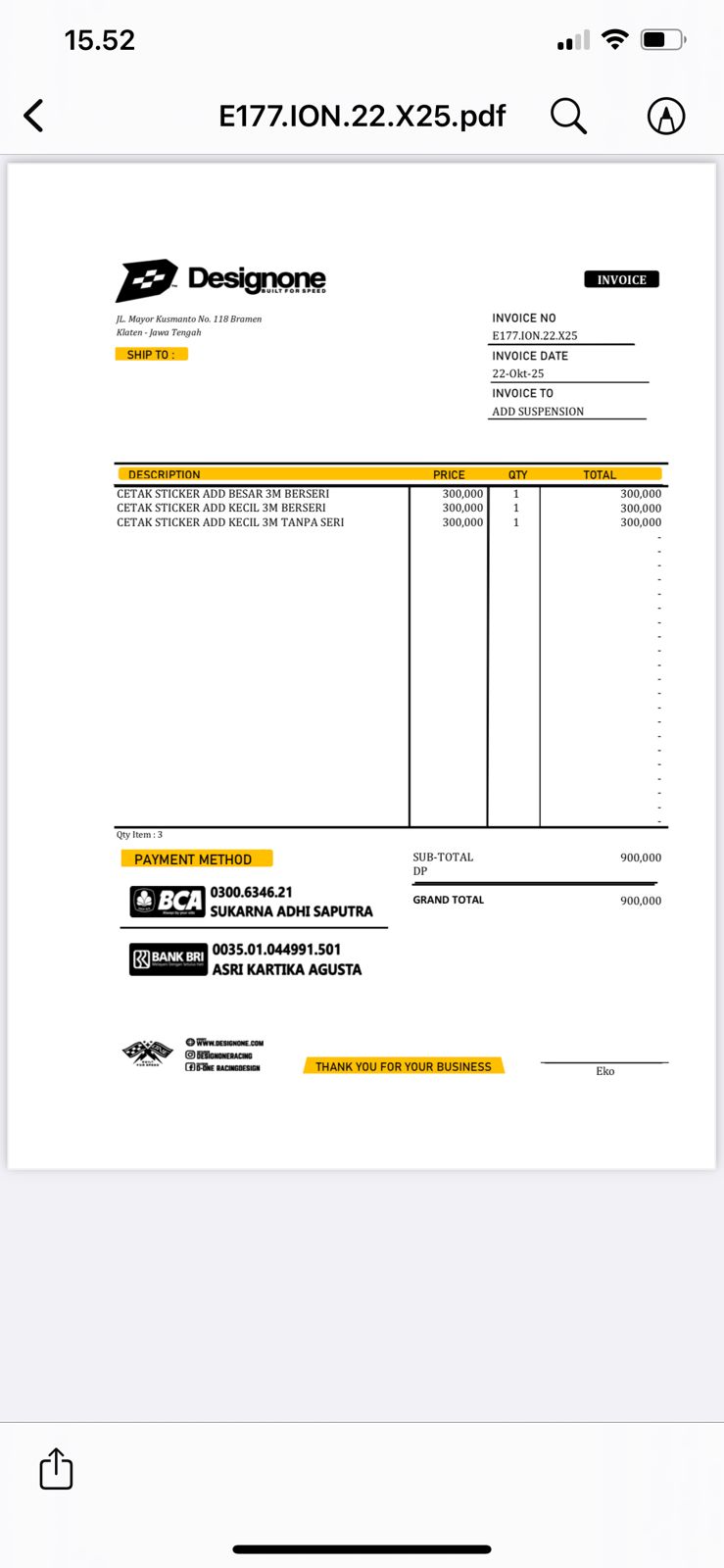 | 3 Pcs | ADDSTCB001 Sticker besar - (Pcs) | Rp. 300,000 | Rp. 900,000 | - | - | Rp. 900,000 |