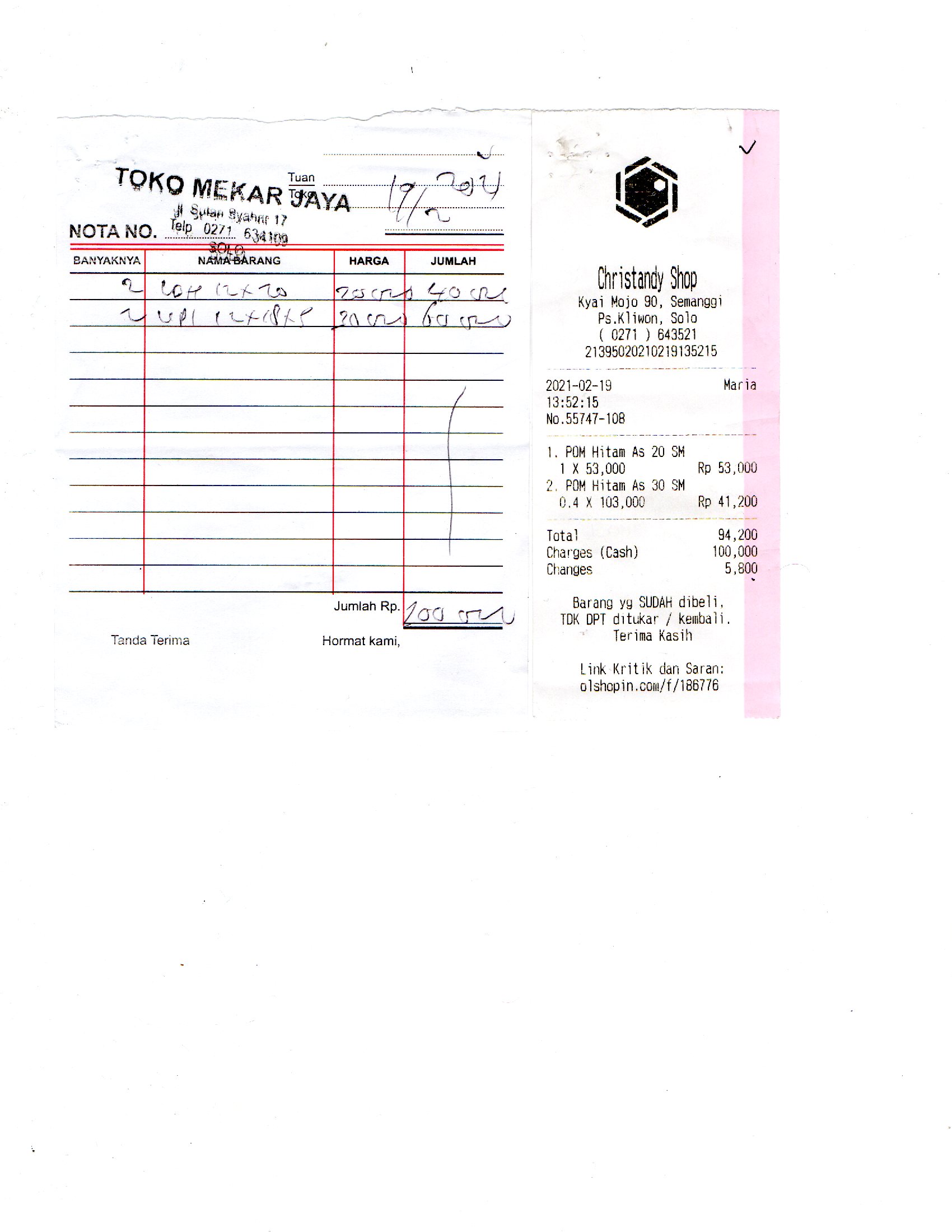 | 1 | 23-02-2021 10:11 | PELUNASAN | Rp. 194,500 | Rp. 0 | Rp. 194,500 | Download |
