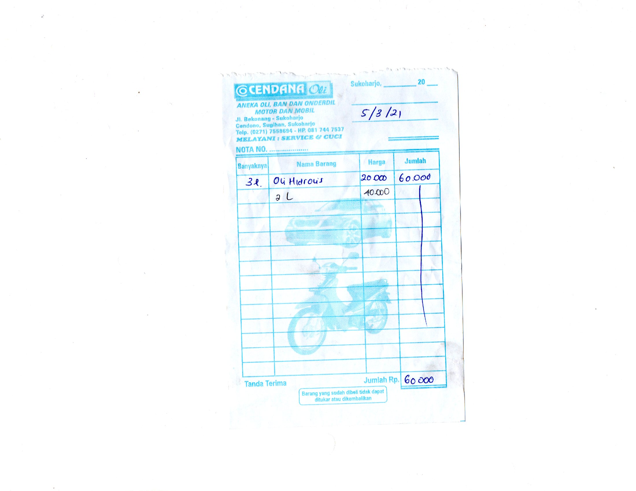 | 1 | 05-03-2021 13:45 | PELUNASAN | Rp. 60,000 | Rp. 0 | Rp. 60,000 | Download |