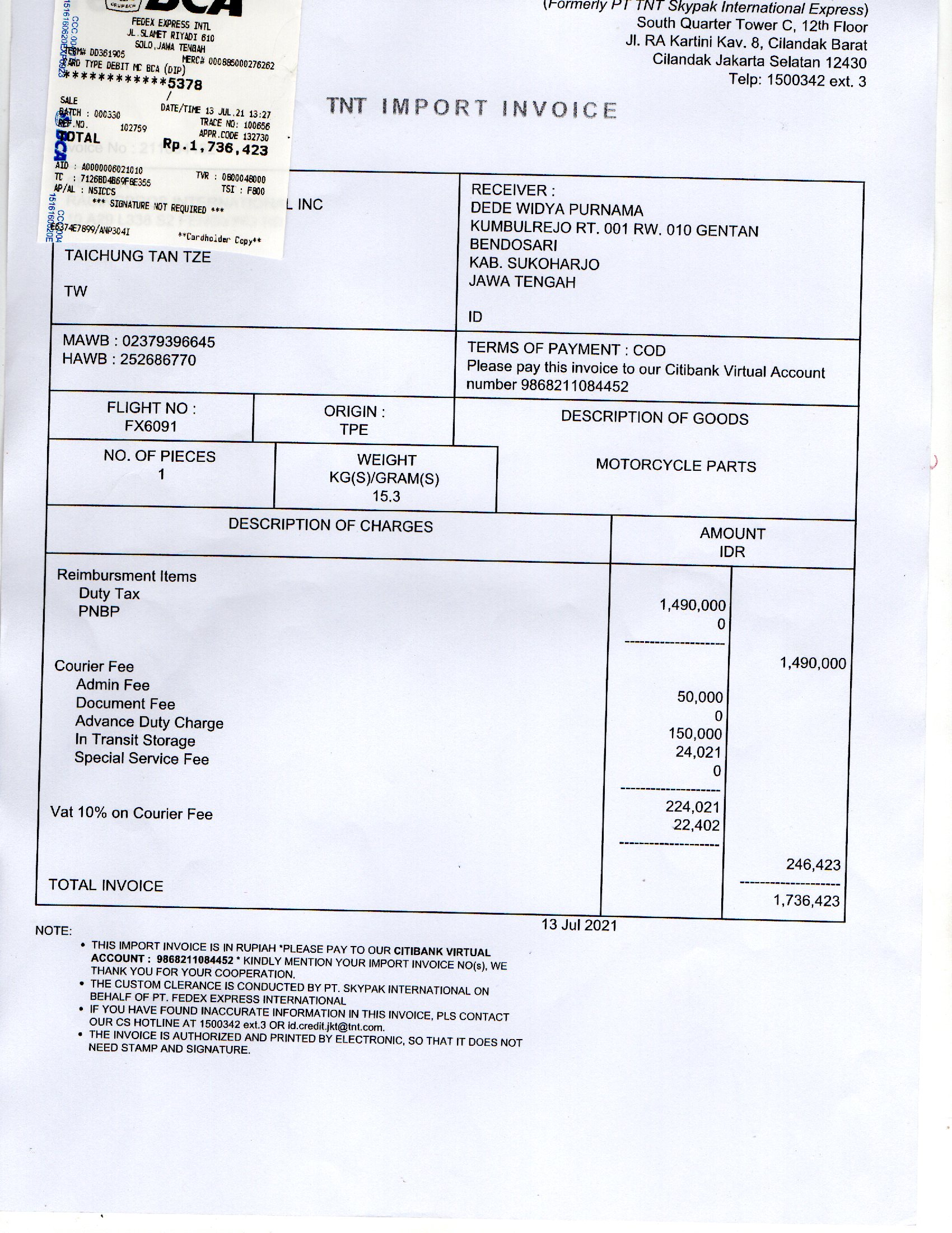 | 1 | 15-07-2021 14:45 | PELUNASAN | Rp. 1,736,423 | Rp. 0 | Rp. 1,736,423 | Download |