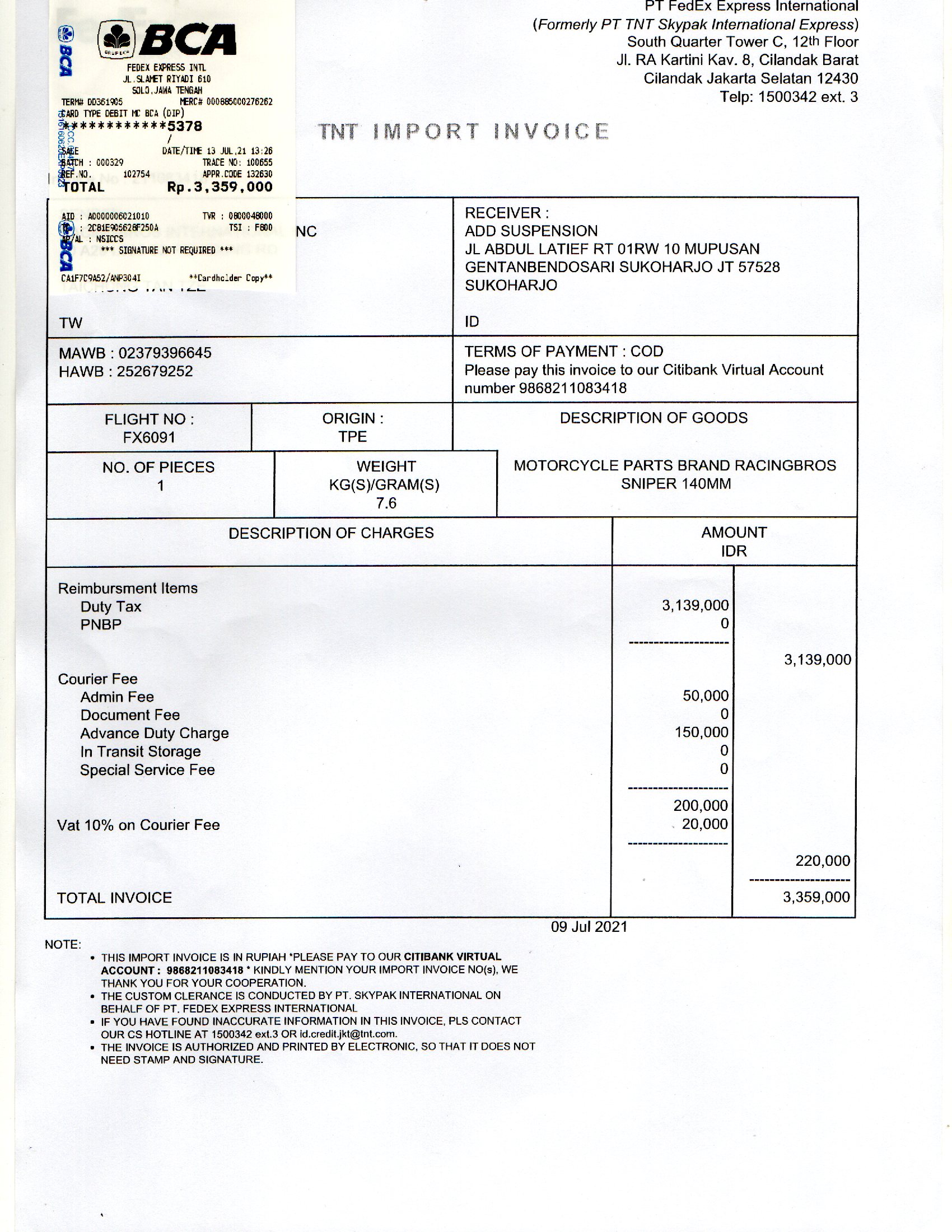 | 1 | 15-07-2021 14:50 | PELUNASAN | Rp. 3,359,000 | Rp. 0 | Rp. 3,359,000 | Download |