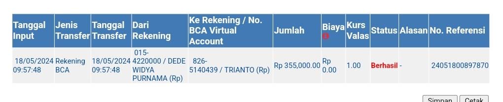 | 1 | 18-05-2024 09:30 | PELUNASAN | Rp. 355,000 | Rp. 0 | Rp. 355,000 | Download |