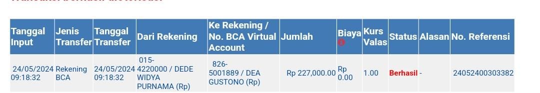 | 1 | 23-05-2024 10:10 | PELUNASAN | Rp. 277,000 | Rp. 0 | Rp. 277,000 | . | Download |
