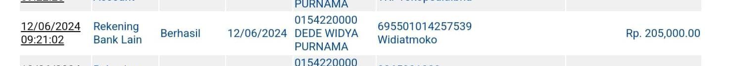 | 1 | 12-06-2024 09:53 | PELUNASAN | Rp. 205,000 | Rp. 0 | Rp. 205,000 | Download |