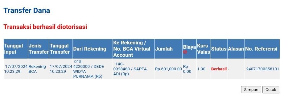 | 1 | 17-07-2024 14:10 | PELUNASAN | Rp. 601,000 | Rp. 0 | Rp. 601,000 | . | Download |