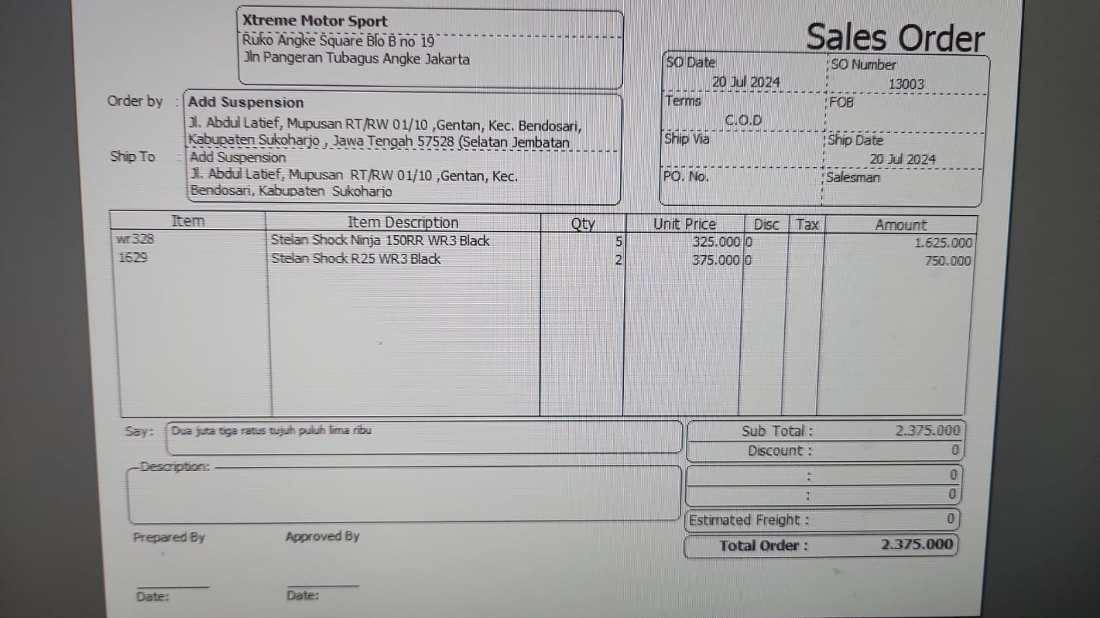 | 1 | 20-07-2024 15:10 | PELUNASAN | Rp. 2,375,000 | Rp. 0 | Rp. 2,375,000 | . | Download |