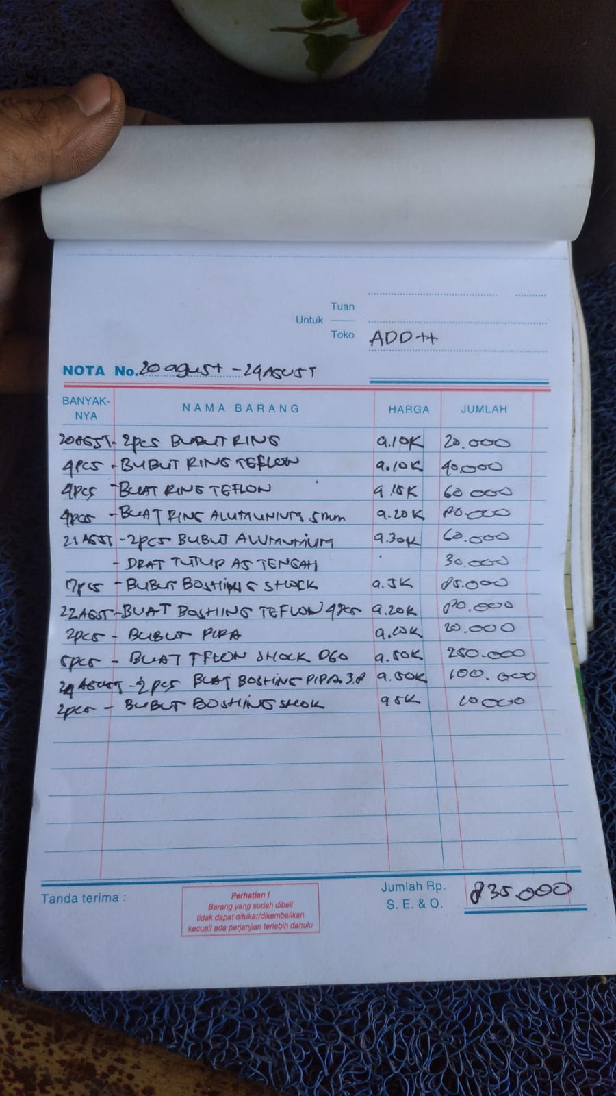| 1 | 24-08-2024 00:00 | PELUNASAN | Rp. 835,000 | Rp. 0 | Rp. 835,000 | . | Download |