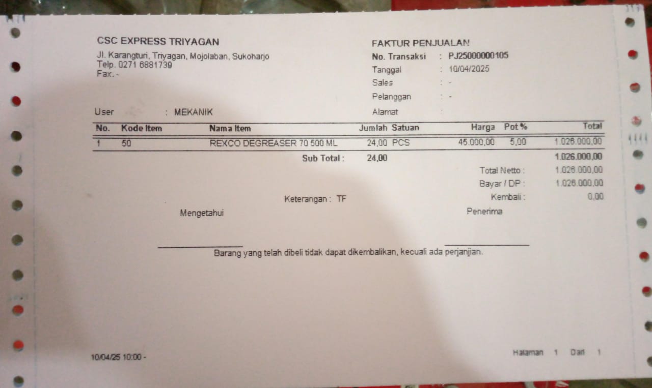 | 1 | 08-05-2025 10:50 | PELUNASAN | Rp. 1,026,000 | Rp. 0 | Rp. 1,026,000 | . | Download |