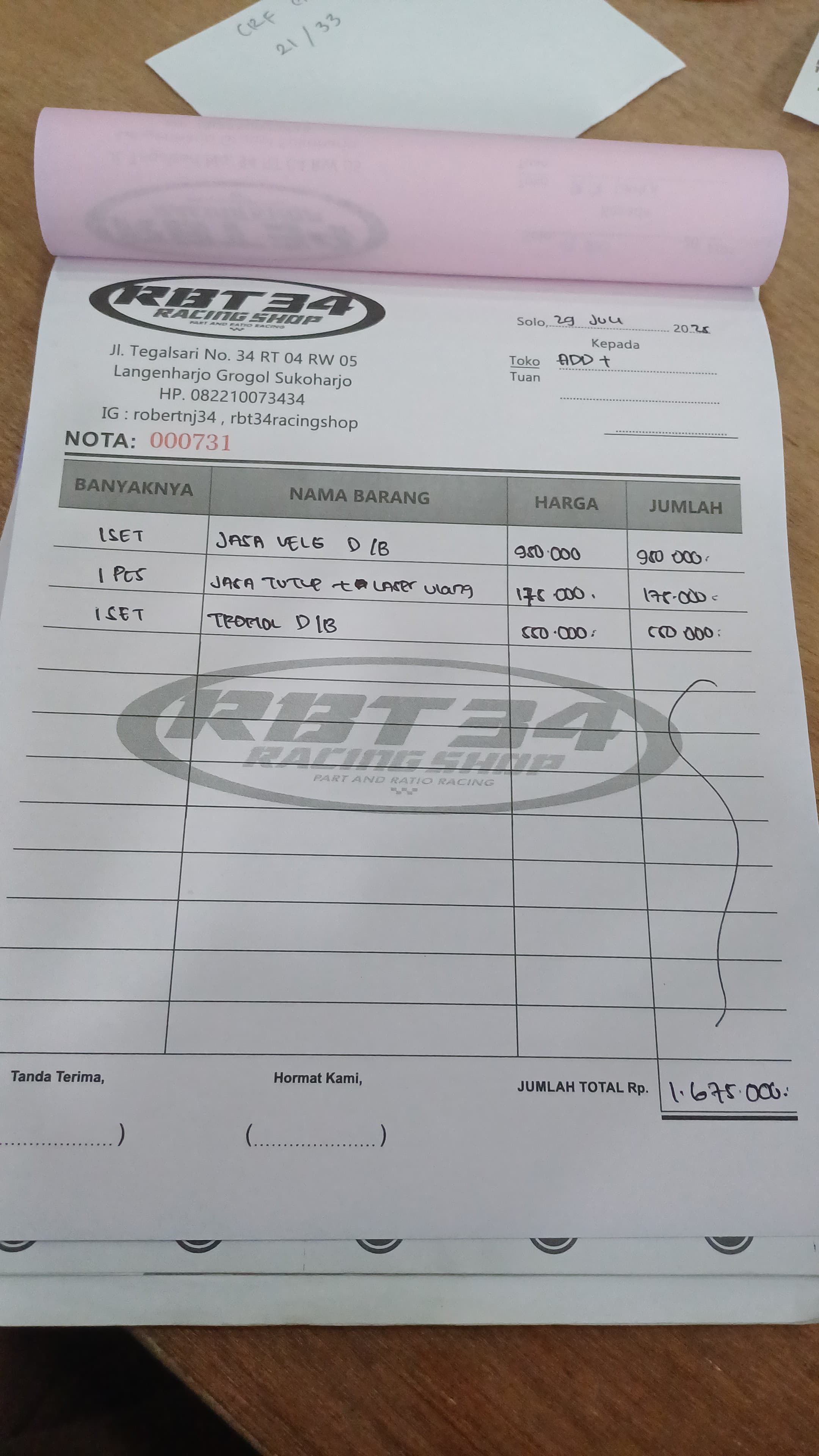 | 1 | 29-07-2025 06:30 | PELUNASAN | Rp. 1,500,000 | Rp. 0 | Rp. 1,500,000 | . | Download |