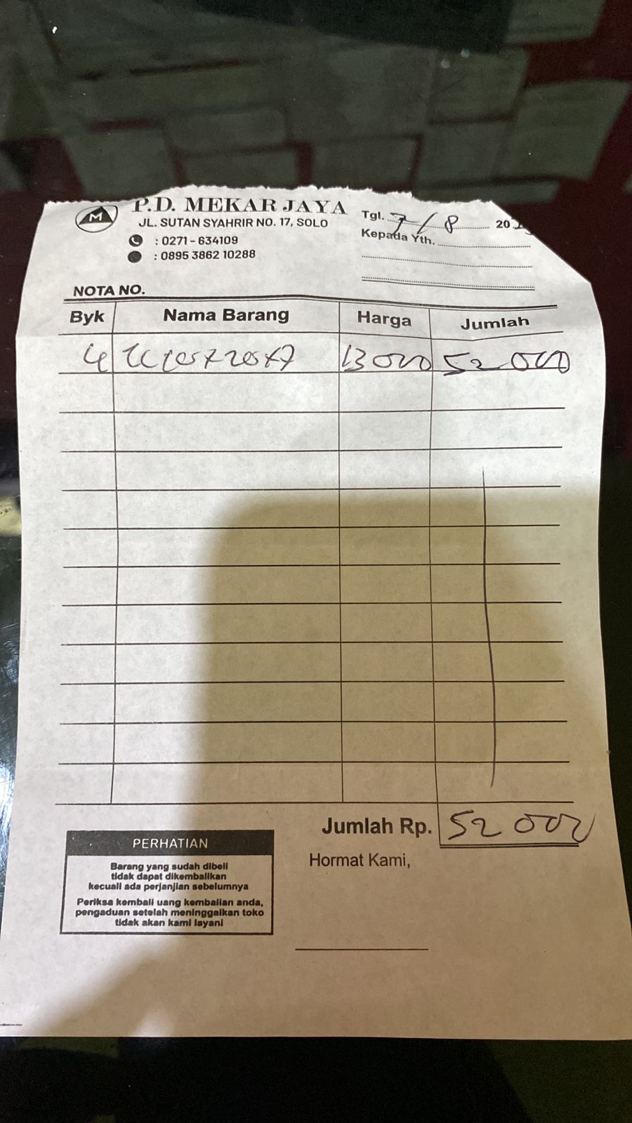 | 1 | 07-08-2025 10:30 | PELUNASAN | Rp. 116,000 | Rp. 0 | Rp. 116,000 | . | Download |