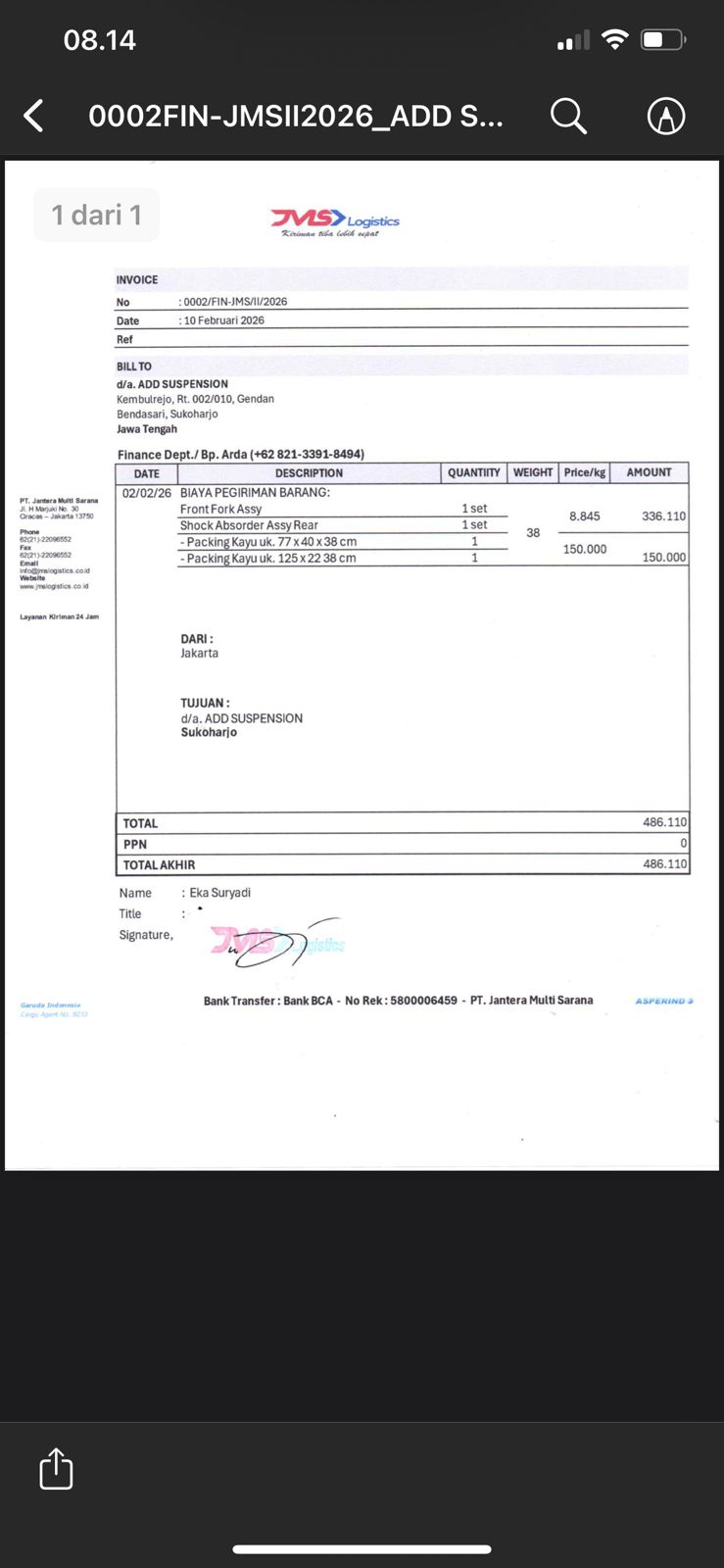 | 1 | 10-02-2026 13:30 | PELUNASAN | Rp. 486,000 | Rp. 0 | Rp. 486,000 | Download |