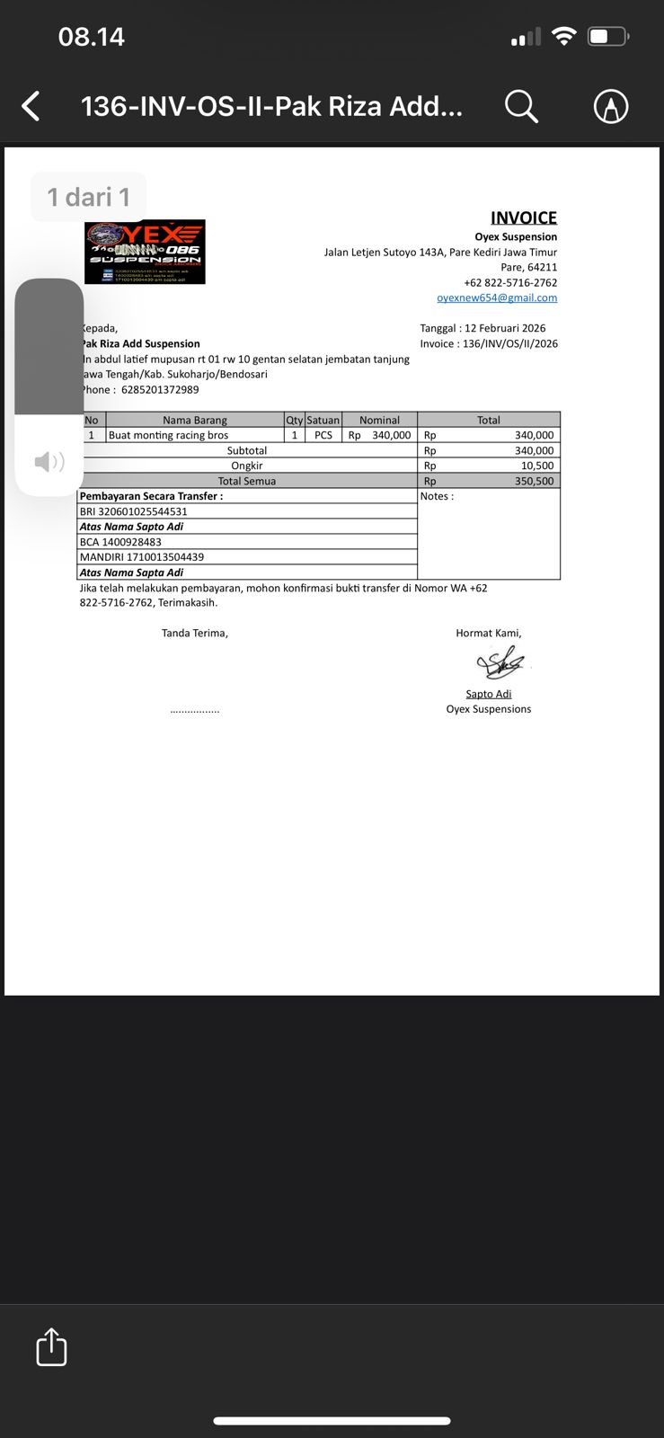 | 1 | 14-02-2026 08:10 | PELUNASAN | Rp. 350,500 | Rp. 0 | Rp. 350,500 | Download |