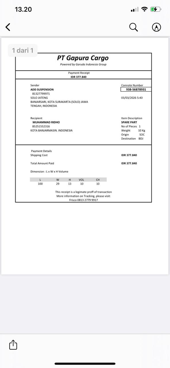 | 1 | 03-03-2026 09:30 | PELUNASAN | Rp. 377,840 | Rp. 0 | Rp. 377,840 | . | Download |
