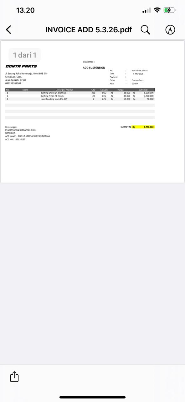 | 1 | 10-03-2026 10:10 | PELUNASAN | Rp. 8,750,000 | Rp. 0 | Rp. 8,750,000 | . | Download |