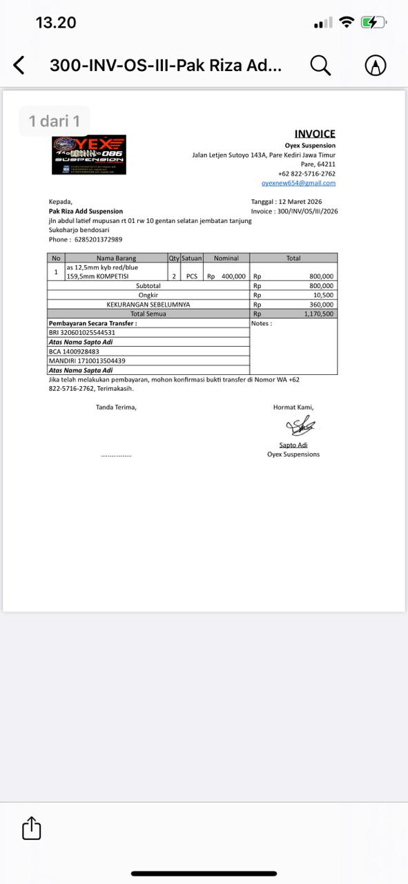 | 1 | 12-03-2026 10:30 | PELUNASAN | Rp. 810,500 | Rp. 0 | Rp. 810,500 | . | Download |