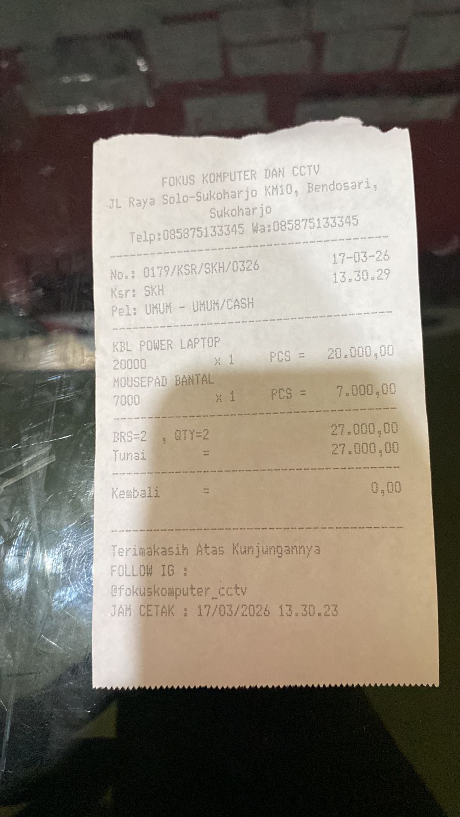 | 1 | 17-03-2026 10:30 | PELUNASAN | Rp. 618,000 | Rp. 0 | Rp. 618,000 | . | Download |
