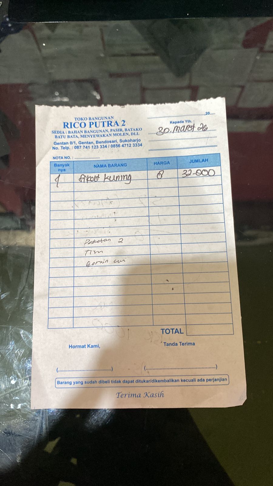 | 1 | 30-03-2026 13:10 | PELUNASAN | Rp. 194,000 | Rp. 0 | Rp. 194,000 | . | Download |